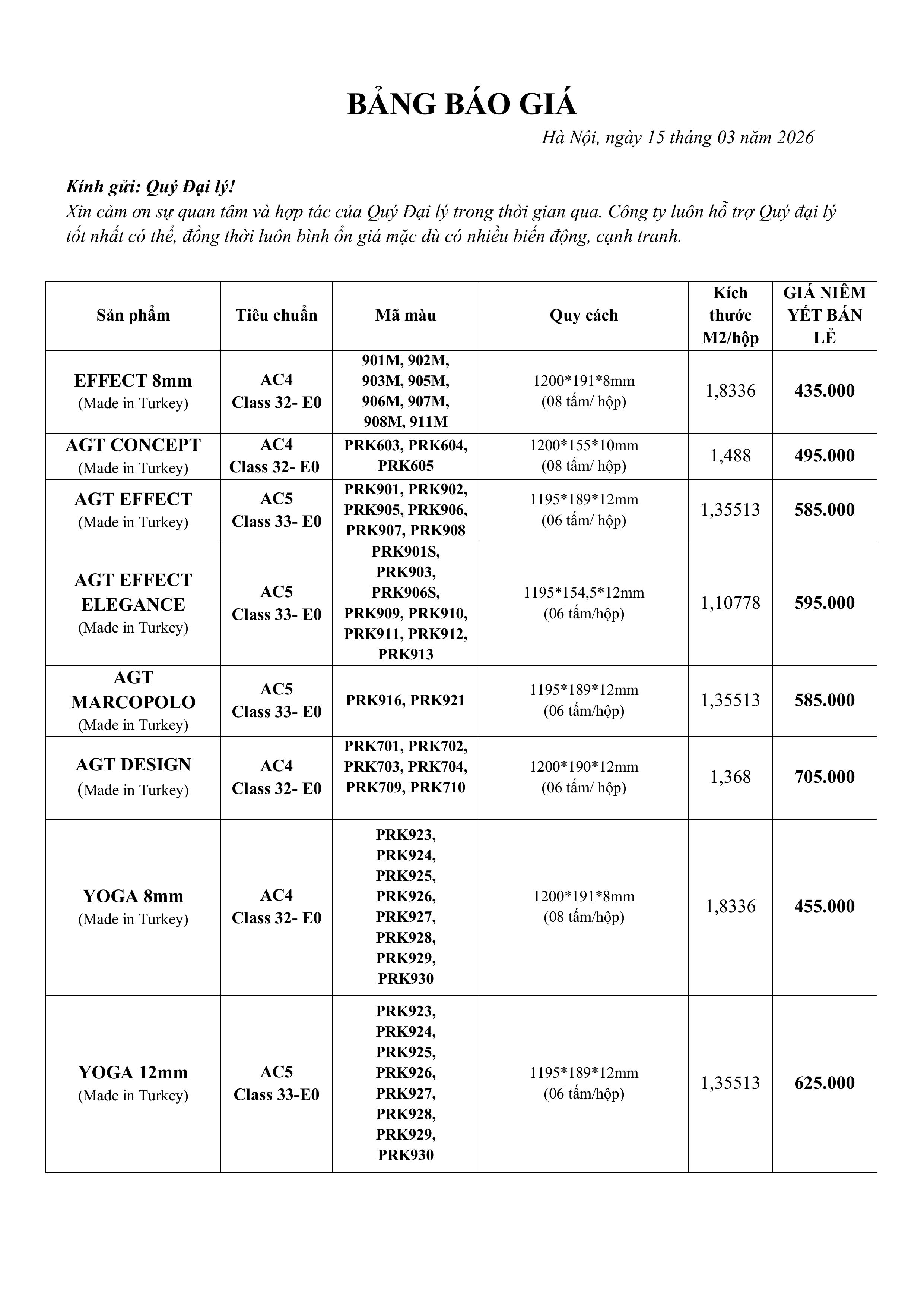 Vì vậy, công ty chúng tôi xin thông báo điều chỉnh báo giá sàn gỗ công nghiệp mới nhất 2026 để phù hợp với tình hình thực tế, đồng thời vẫn đảm bảo chất lượng sản phẩm và dịch vụ tốt nhất đến khách hàng.