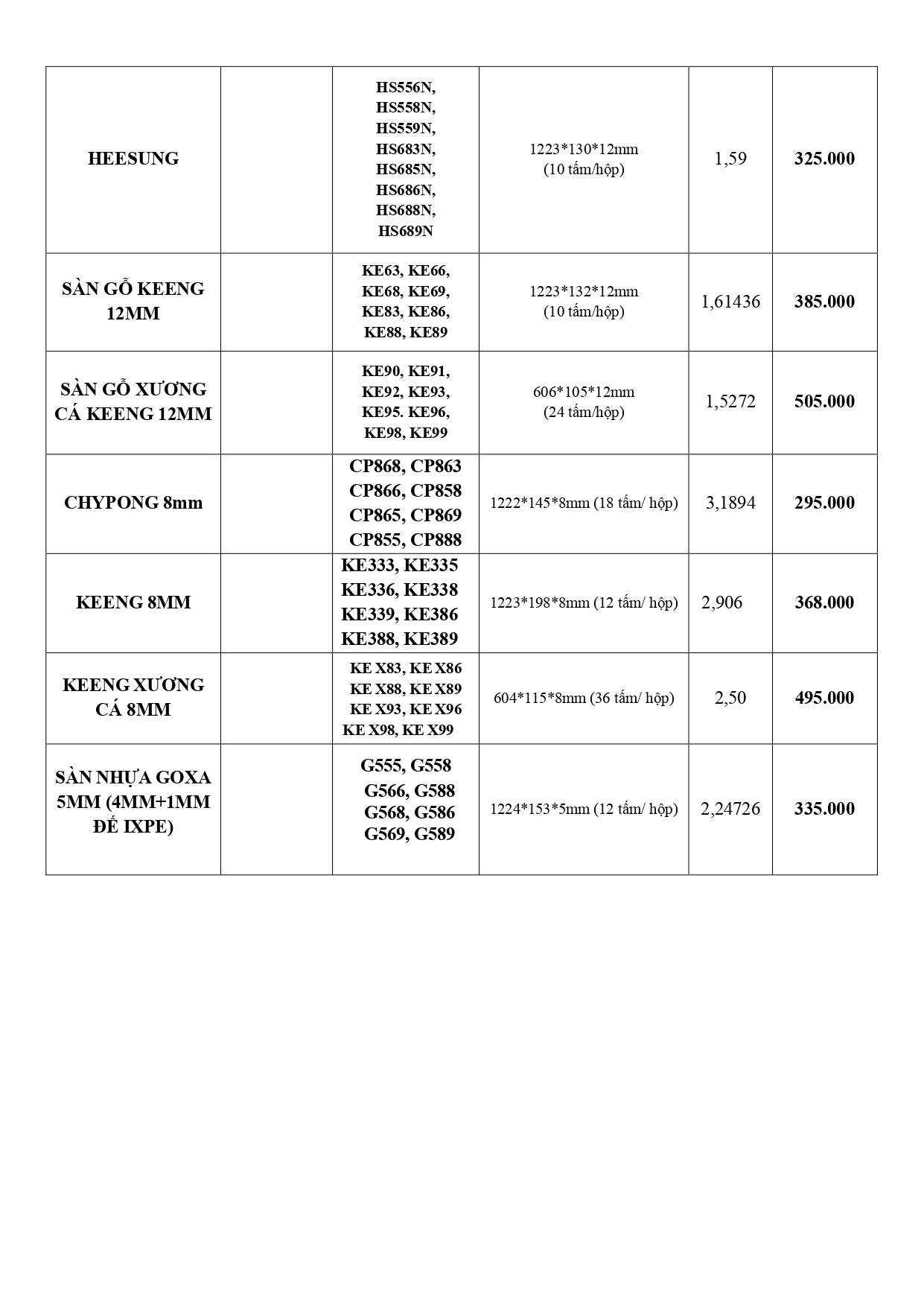 Bảng báo giá sàn gỗ công nghiệp mới nhất
